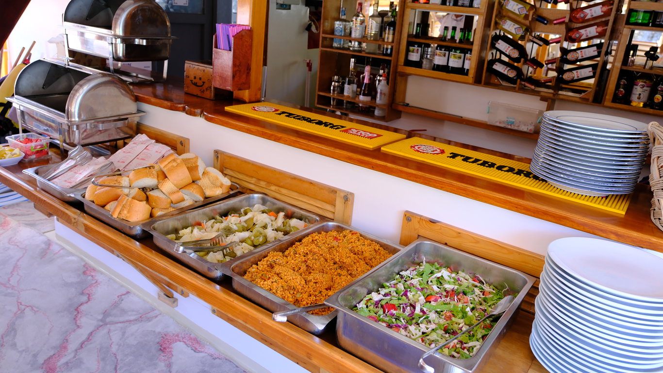 Balık veya Tavuk seçebileceğiniz açık büfe bulunmaktadır.