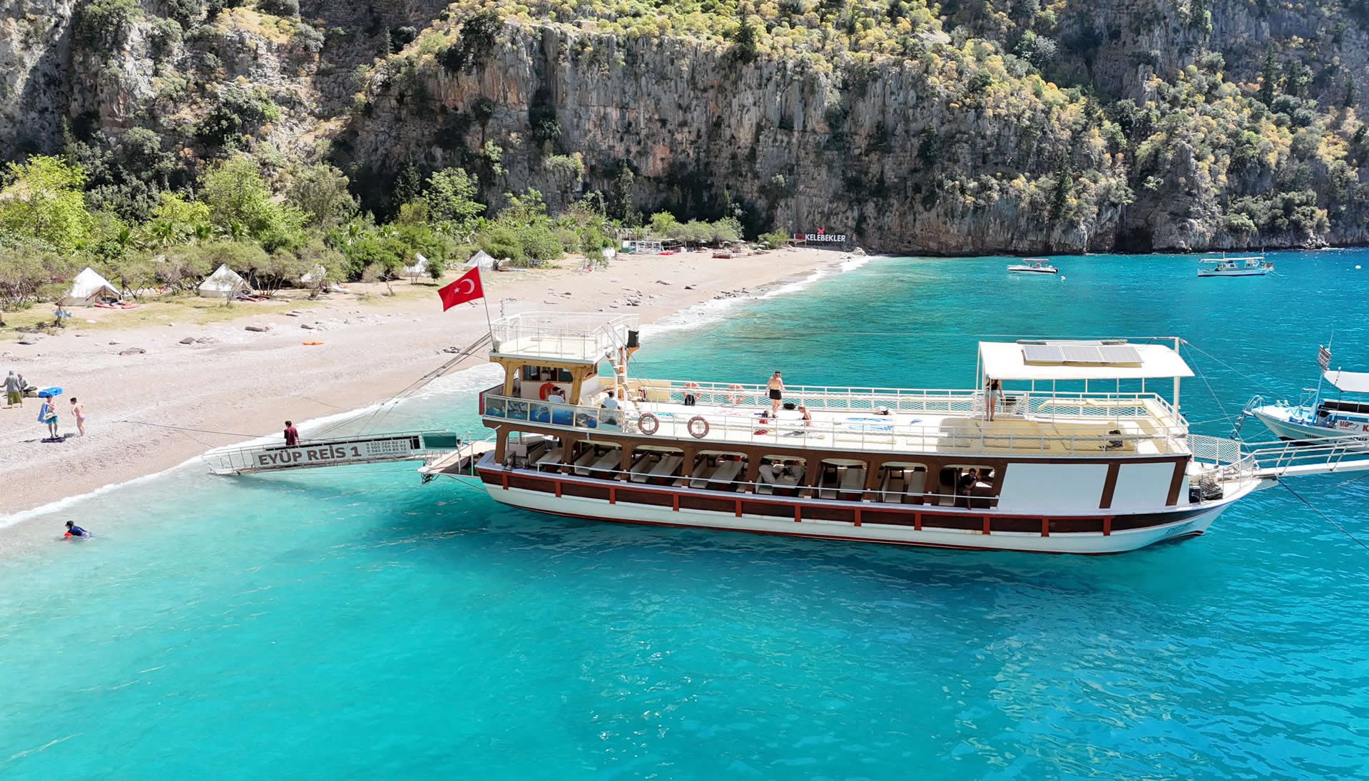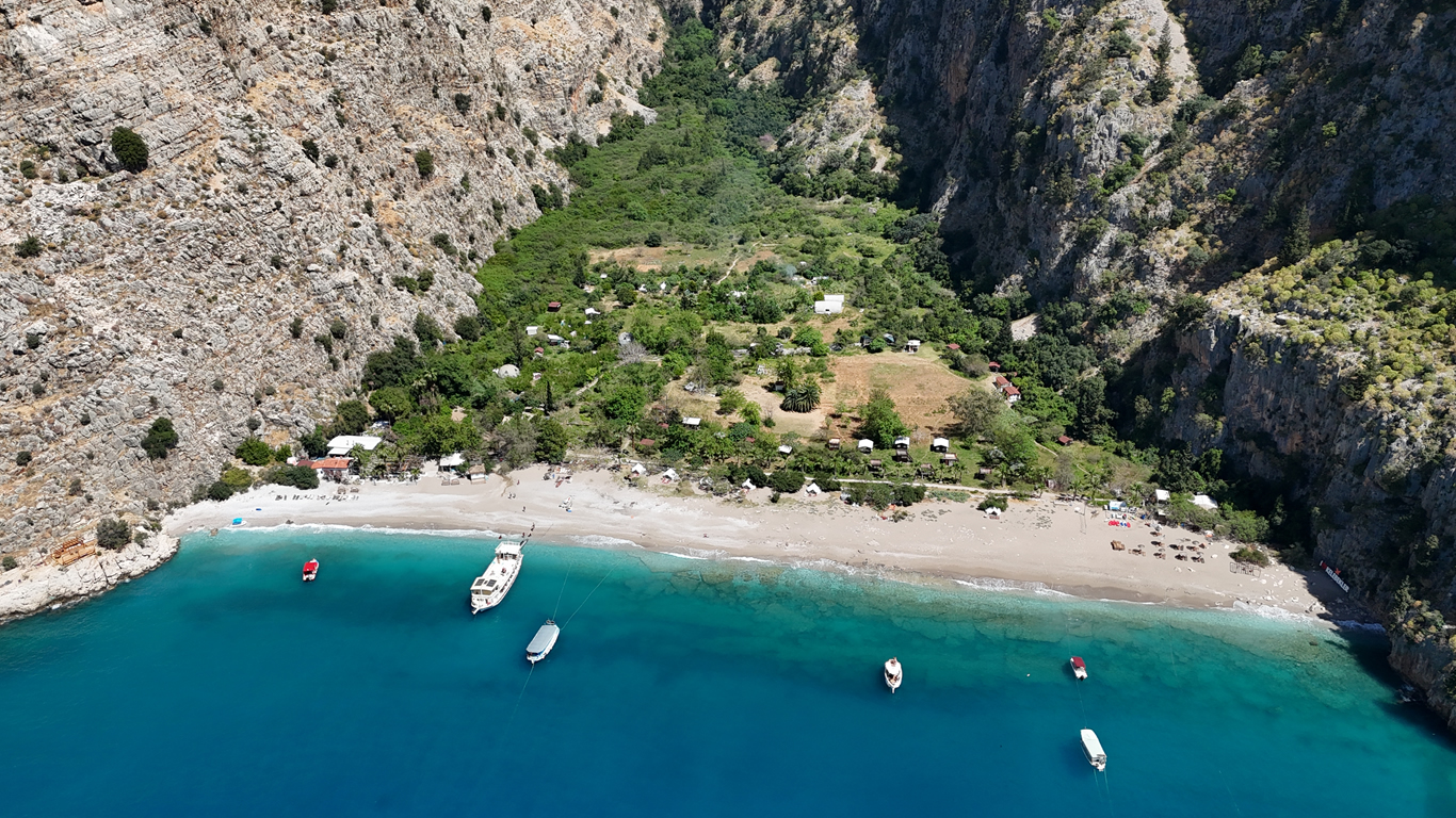Ölüdeniz'in en popüler vadisine yolculuk sırasında yüksek kayalıklar arasında kalmış, turkuazın bir kaç tonuna şahitlik edecek ve doğal kalmayı başarmış nadir sahillerden biri ile karşılaşacaksınız. Bünyesinde seksenden fazla kelebek türü barındıran "Kelebekler Vadisi" içerisinde yürüyüş yaparak Babadağ’ın yüksek irtifalarından süzülüp gelen vadinin dik kayalıkları arasında oluşmuş şelaleyi görebilirsiniz. Bolca vadi fotoğrafları çekeceğiniz eşsiz güzellikleri anılarınıza kaydedeceğiniz durak noktamızdır.